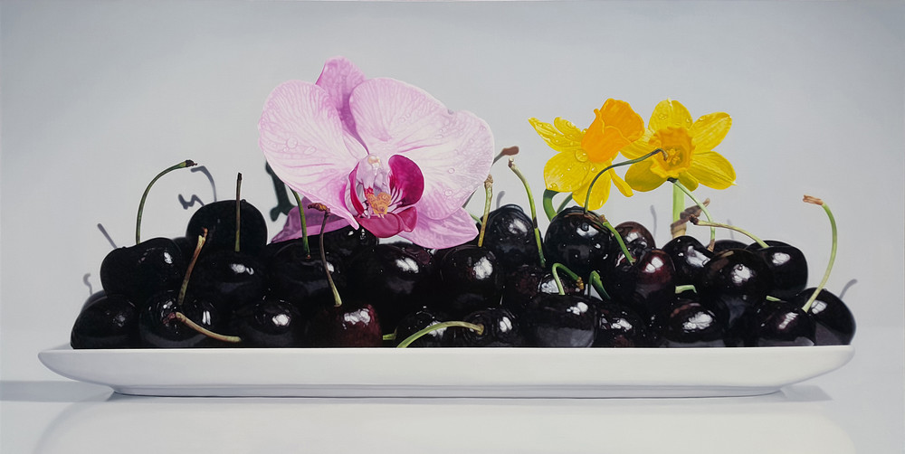 캔버스 안에 꽃과 과일이 등장하면서 우리는 기쁨과 풍요로움을 느낄수 있다. 풍요로움이란 인간의 욕망이 충족되어질 때 느끼는 감정이기에