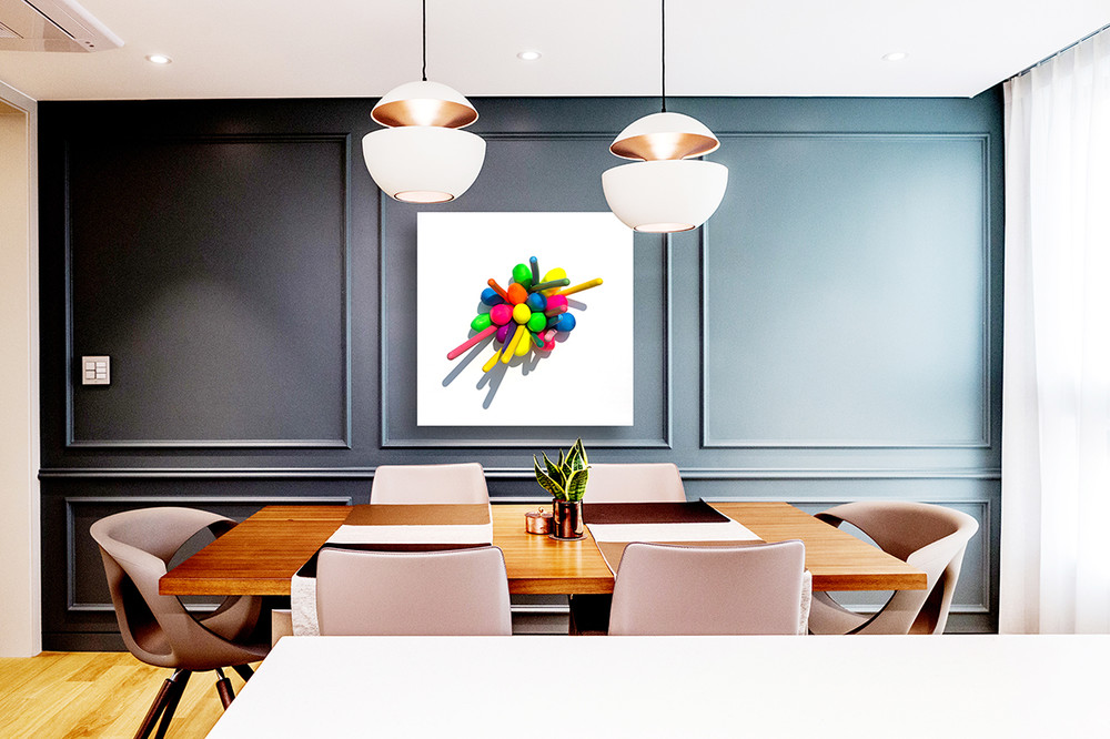 그림이 아닌 설치미술의 작품으로 독특하고도 세련된 감성이 느껴진다. 모던한 가구와 함께 연출한다면 멋진 연출이 될 수 있다.
