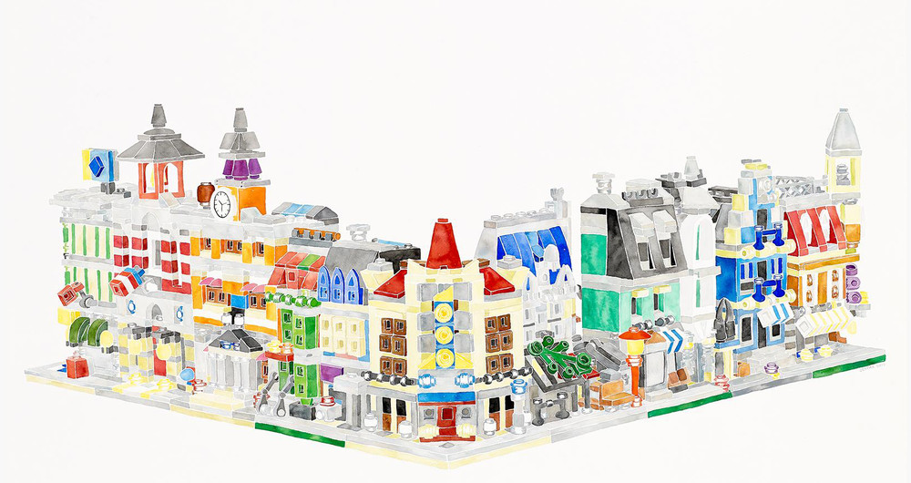 매체로 사용하고 있다. 수채화의 부드러운 느낌과 온화한 느낌이 레고를 만나 순수함을 찾고 싶은 작가만의 Street을 만들어 내고 있다.