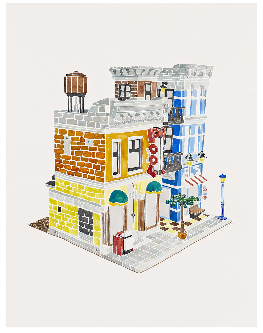 매체로 사용하고 있다. 수채화의 부드러운 느낌과 온화한 느낌이 레고를 만나 순수함을 찾고 싶은 작가만의 Street을 만들어 내고 있다.