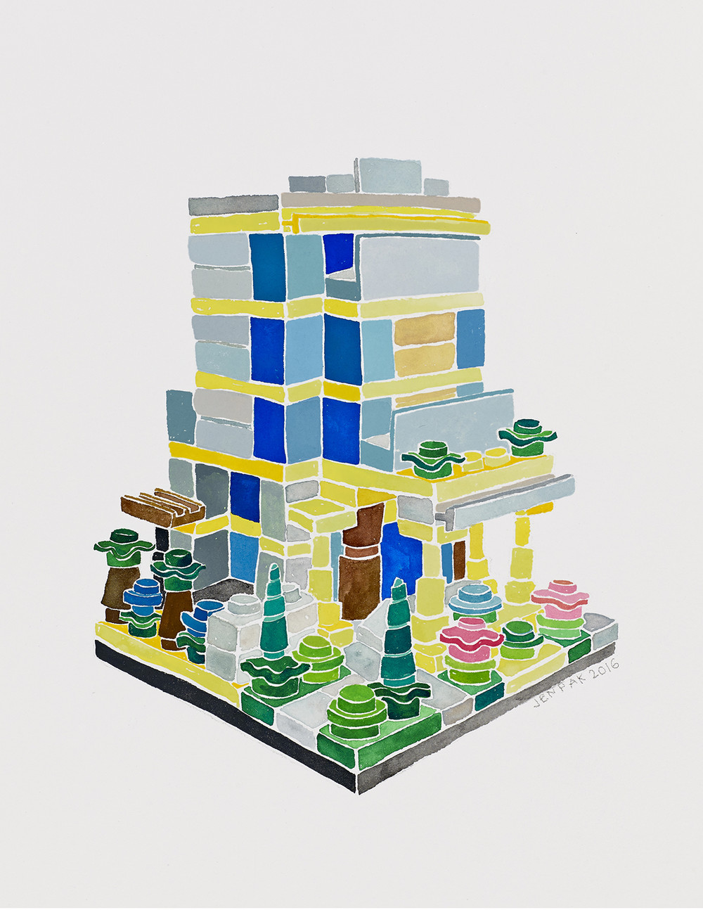 매체로 사용하고 있다. 수채화의 부드러운 느낌과 온화한 느낌이 레고를 만나 순수함을 찾고 싶은 작가만의 Street을 만들어 내고 있다.