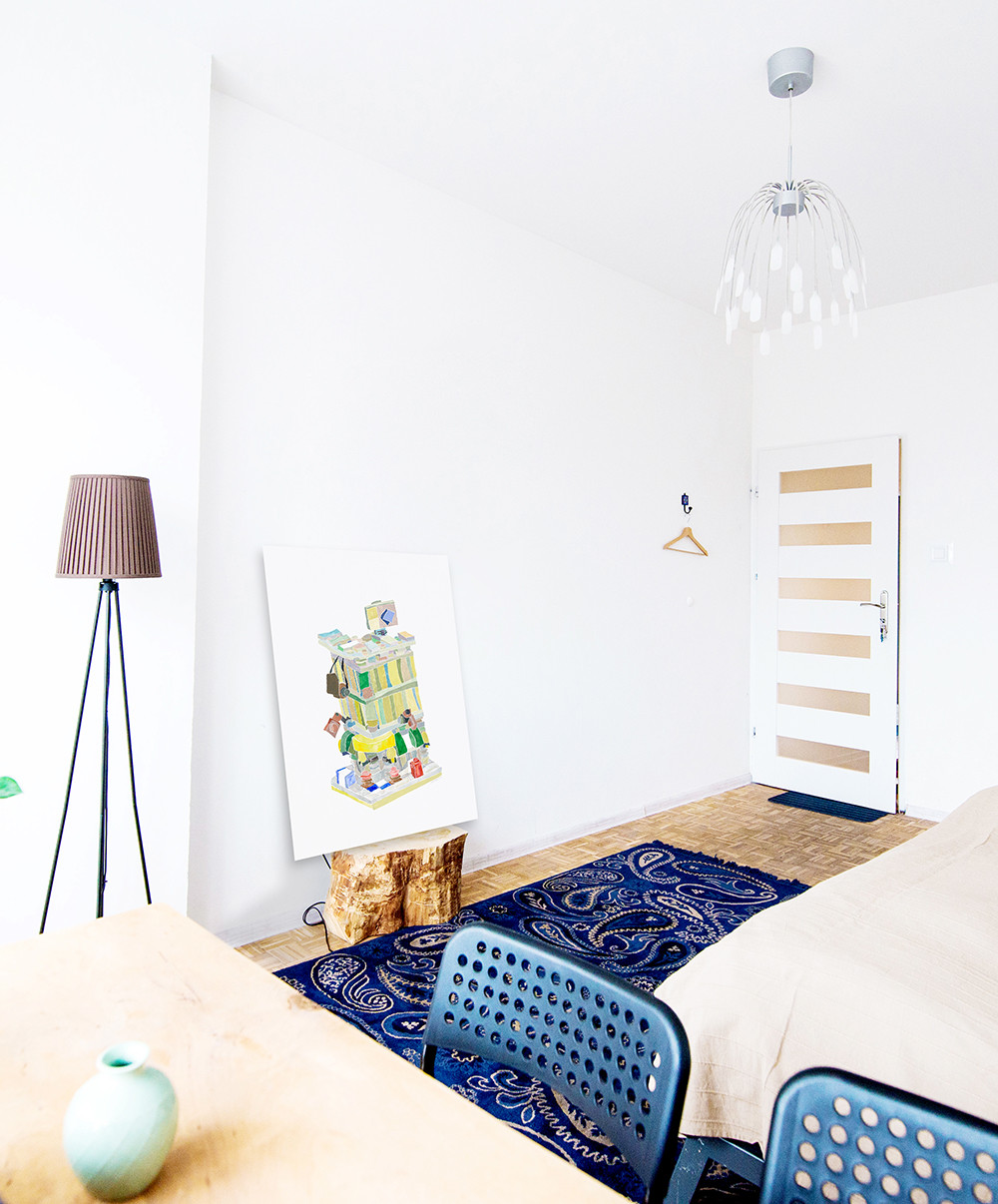 작가는 어렸을 적 레고를 만들던 때를 떠올리며 블록을 하나 둘씩 쌓아올릴 때마다 그동안 잊고 지냈던 어린 날의 순수함을 다시 찾고싶어하는 ‘나’를 발견했다고 한다. 수채화는 유화나 아크릴과는 다르게 조금 더 순수하고 투명한 느낌을 줌으로써 어렸을 때의 순수함을 되찾고 싶다는 바램을 대변해주는