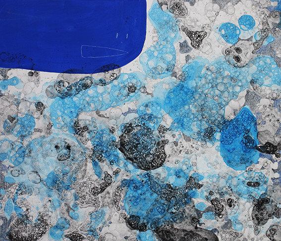 고래의 그림 아래 작은 낙서를 해석할 수 있으며 이 그림 위에 작가는 다양한 재료와 색채로 이 그림을 완성시켜 나간다.