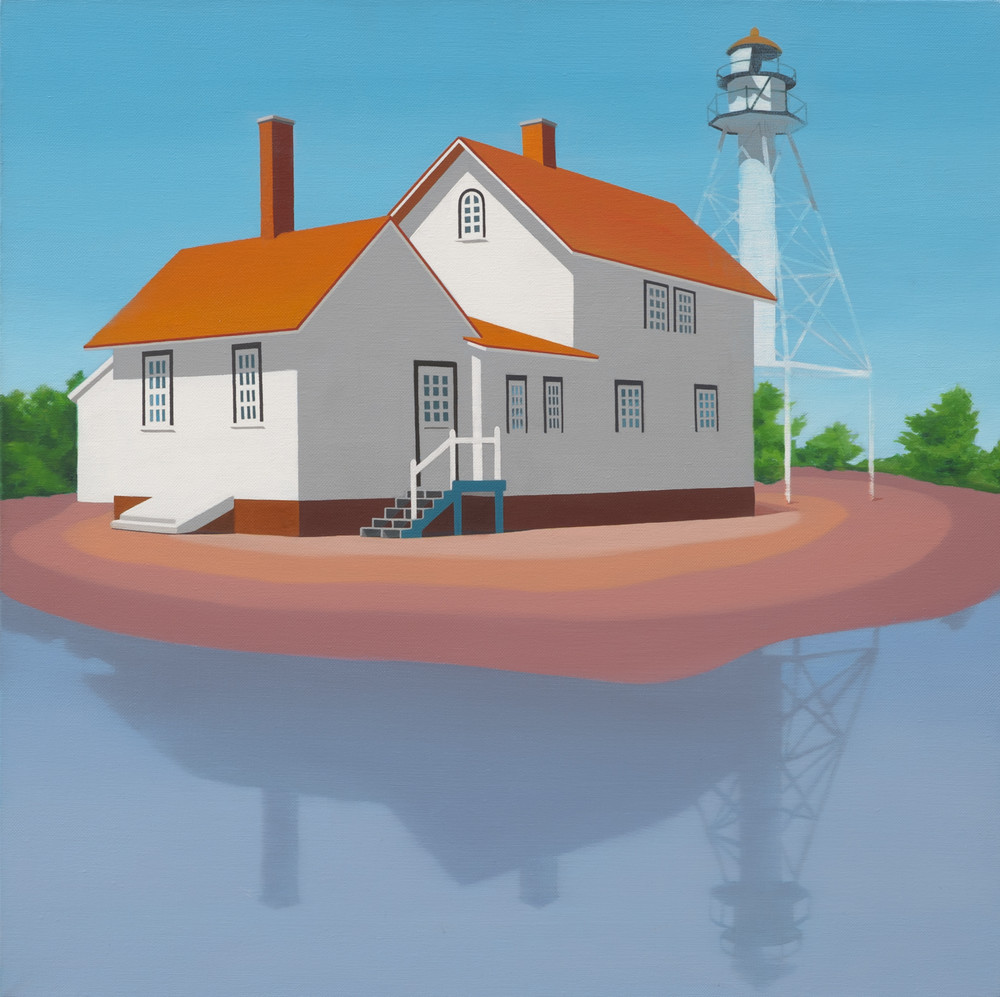신리라 작가의 작품은 풍경이나 집이 주로 보인다. 너무 흔해 관심을 불러일으키지 않는 집이나 창고, 굴뚝, 회색벽 등으로 작업되어진다.