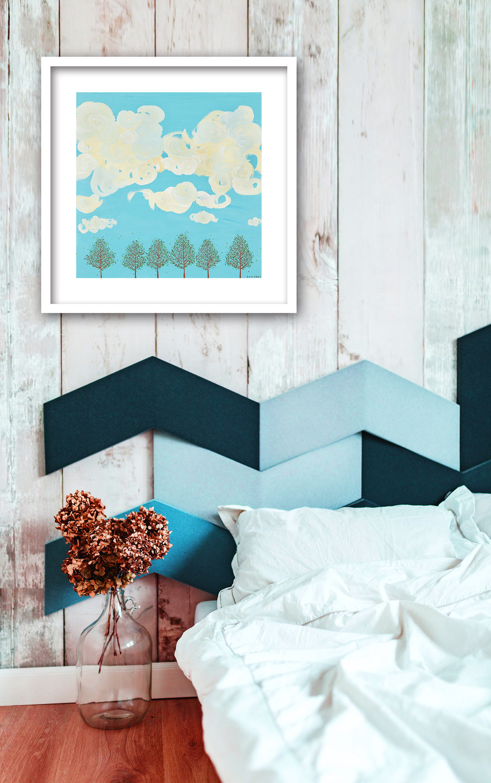 평소에 우리가 자주 보지 않는 하늘을 눈앞에 표현해주어 따뜻한 봄날에 아주 잘어울리는 작품입니다.