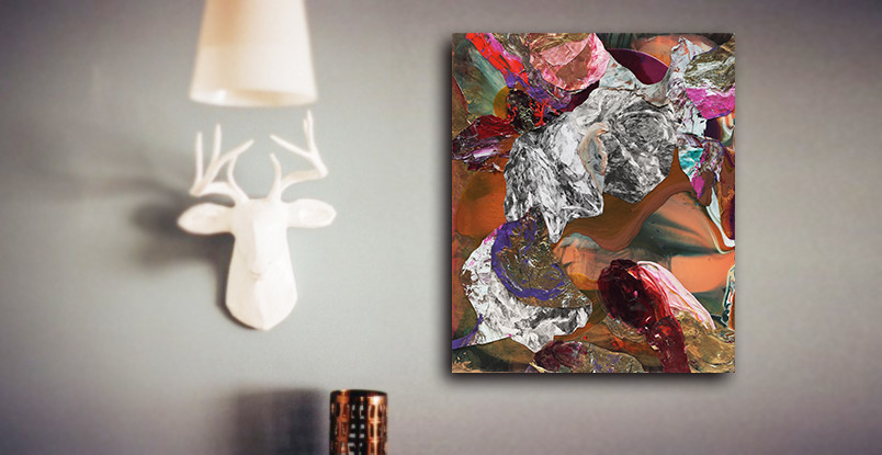 강렬한 색상으로 꼴라쥬되어 이목을 끌 수 있는 작품으로 호텔 로비에 추천하는 작품이다.