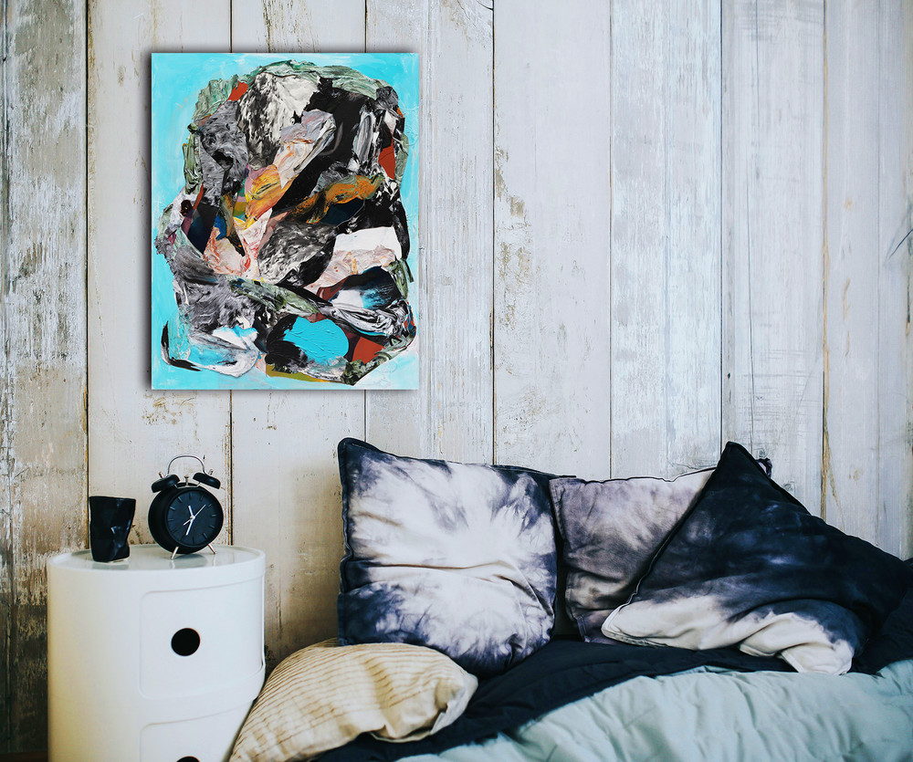 강렬한 색상으로 꼴라쥬되어 이목을 끌 수 있는 작품으로 호텔 로비에 추천하는 작품이다.