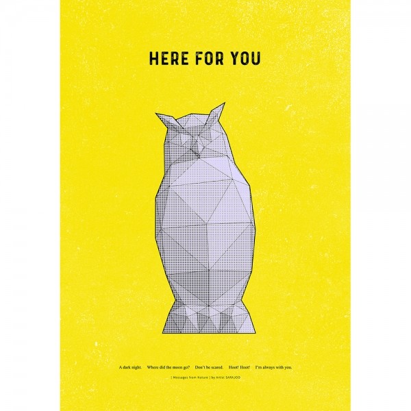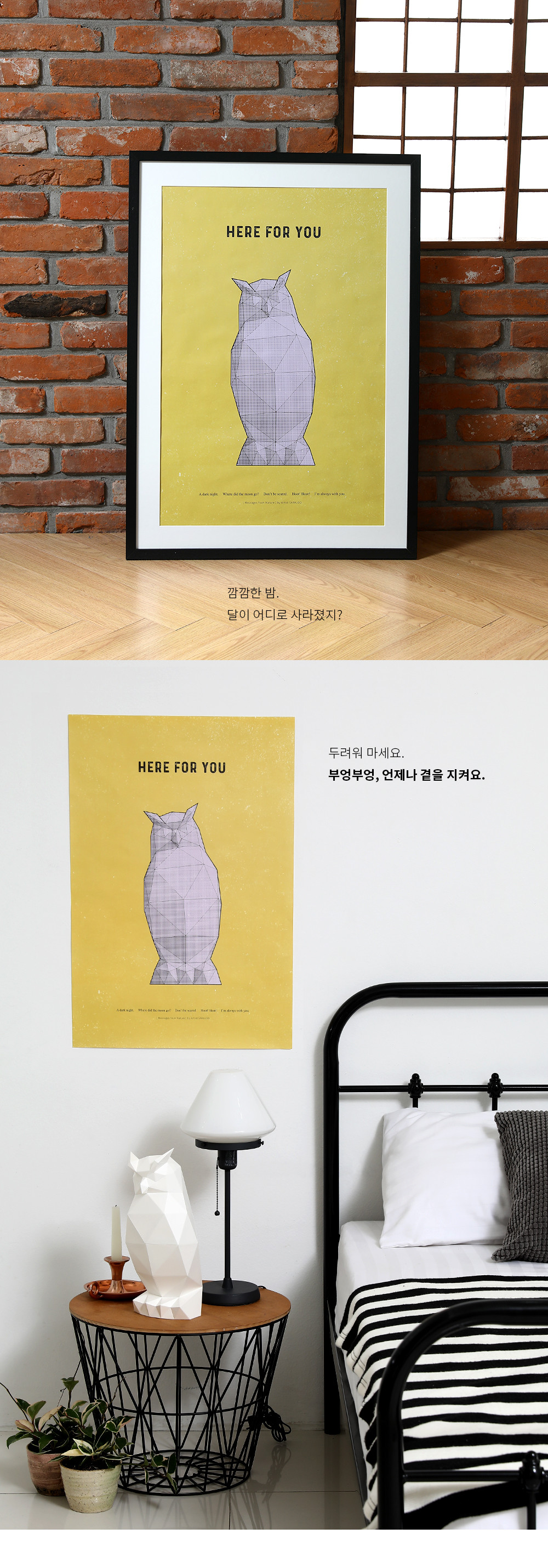낯설은 밤길을 헤메일 때 어디선가 들려오는 부엉이의 소리가 혼자가 아니라는 위안을 줍니다. 어둠의 끝까지 울어주며 함께 있음을 알려주는 부엉이와 같이 먹먹한 현실에서 같이 있는 것 만으로도 위안이 되어주는 존재가 되었으면 합니다.
