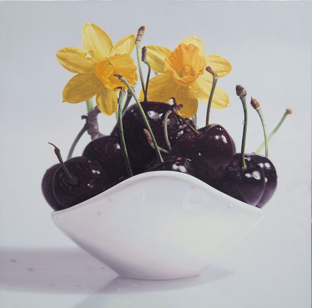 캔버스 안에 꽃과 과일이 등장하면서 우리는 기쁨과 풍요로움을 느낄수 있다. 풍요로움이란 인간의 욕망이 충족되어질 때 느끼는 감정이기에