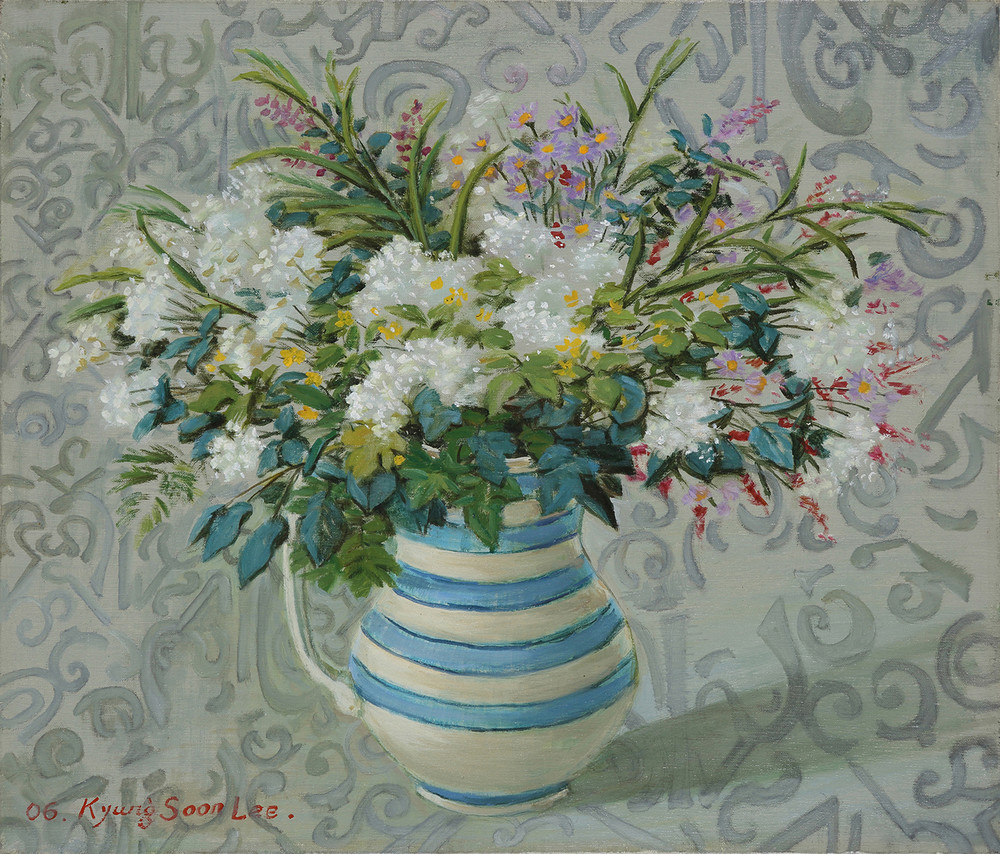 이경순작가의 꽃들은 순수함이 느껴진다. 실제의 꽃같으면서도 약간의 초현실이 보여지기도한다.