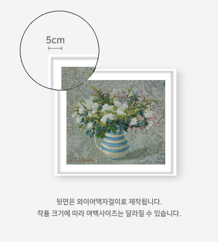 일상에서 볼 수 있는 꽃들의 이미지지만 그림에서는 흔히 볼수없는 작품이며 편안한 공간에 추천하는 그림이다.